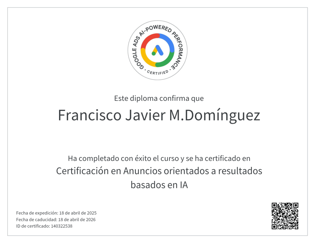 Hoy quiero compartir una pequeña gran noticia: he renovado mi certificación en Google Ads Search. Puede parecer un simple trámite, pero para mí representa algo mucho más importante: el compromiso constante de seguir aprendiendo y ofreciendo un servicio profesional, actualizado y enfocado en resultados reales.